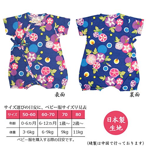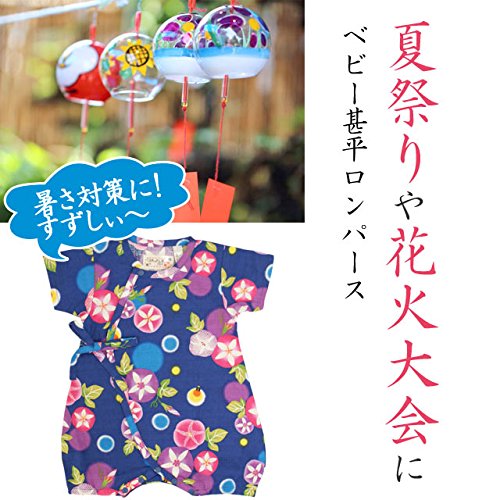 甚平 ロンパース ベビー 新生児 女の子 綿100% 日本製生地 グレコ 朝顔/紺-9754 50-60cm