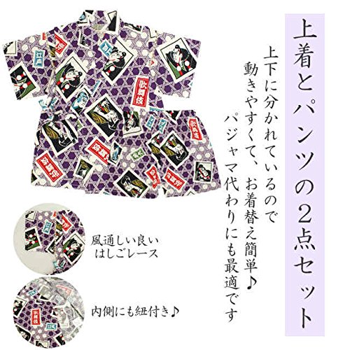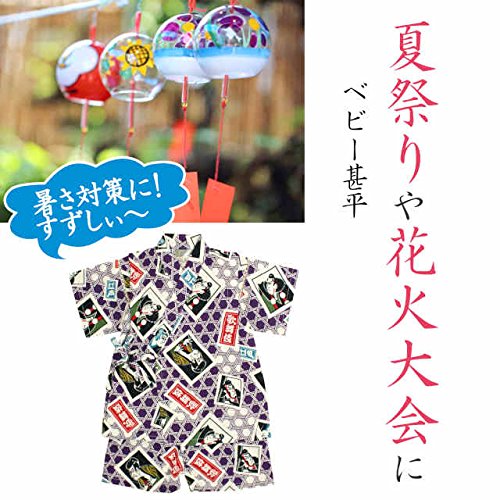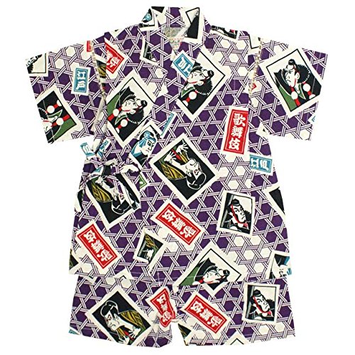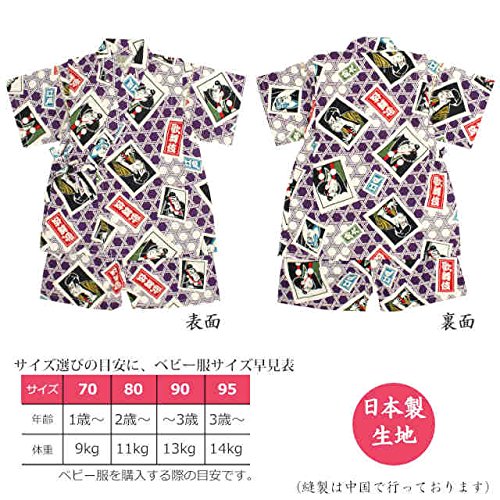 甚平 ベビー 男の子 綿100% 日本製生地 じんべい スーツ上下 祭 子供甚平 かぶき/紫-9800 90cm