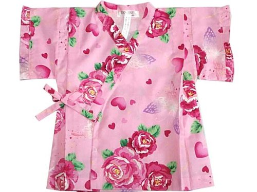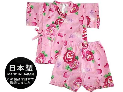 日本製 バラと蝶柄 甚平スーツ ピンク 95cm