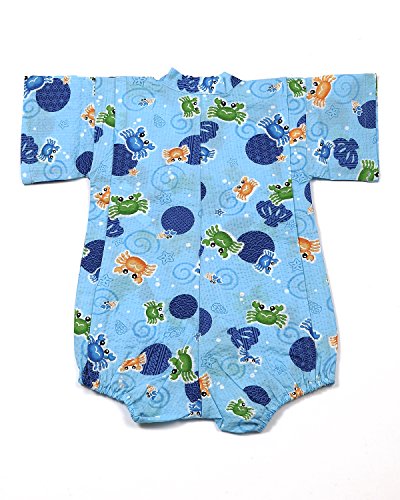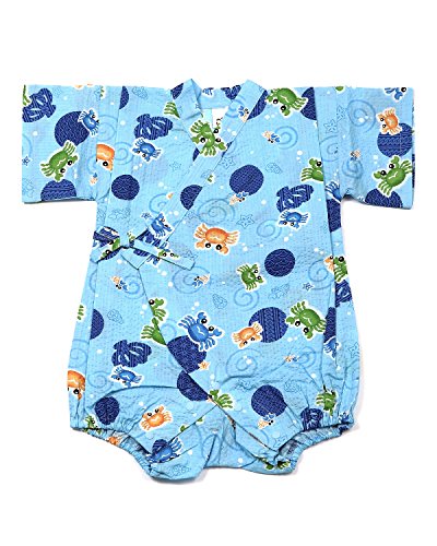 甚平 カニ柄 ブルー [80サイズ] ロンパース グレコ じんべい ベビー 日本製 肌着 パジャマ 寝巻き