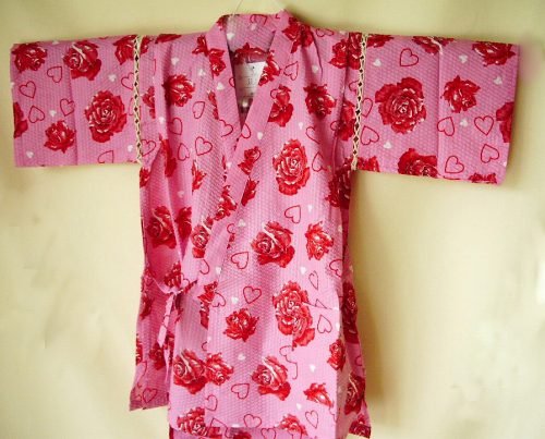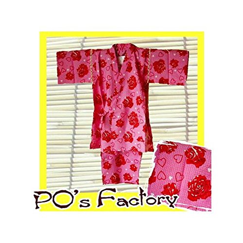 キッズ甚平 バラ&ハート柄【ピンク×レッド】女の子用 (110)