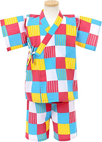 男の子 ブロックチェック柄 甚平【312590307】100cm ピンク系