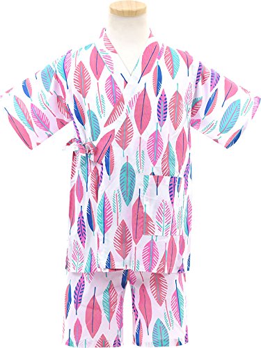 男の子 女の子 プリント柄 甚平【726-244】95cm ピンクパープル(葉柄)