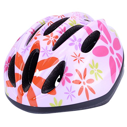 キッズヘルメット ヘルメット 子供用 5-18歳向け 自転車 48-58cmダイヤル調整 ジュニア 自転車用品 軽量 通勤通学 サイクリング スケートボード用 ピンク&花2