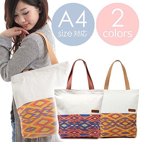 日用品 トートバッグ 関連商品 A4対応 ポップなエキゾチック柄のトートバッグ マザーズバッグ ホワイト×ピンク 1001