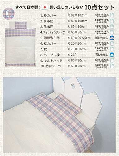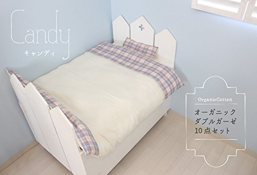 白井産業 日本製 チェックキャンディ オーガニックダブルガーゼ ミニサイズベビー布団10点セット
