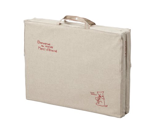日本製 Le sourire ル・スーリール リネン らくらく運べる 取っ手付き ミニサイズ ベビー敷布団 二つ折れタイプ 赤