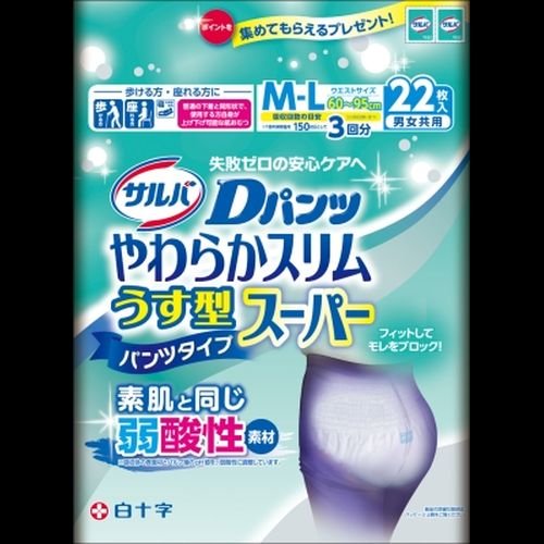 【まとめ買い】サルバ Dパンツ やわらかスリム うす型スーパー 男女共用 M-Lサイズ 22枚入り【ADL区分:一人で歩ける方】 ×2セット