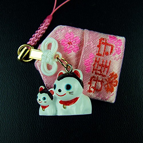 - ポケット付きのお守りに親子のこま犬が付いた、根付けタイプのお守りです。