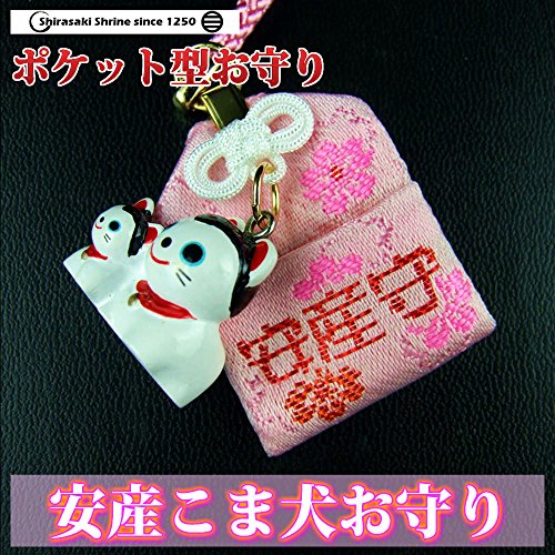 安産祈願こま犬お守り ポケット付き 岩国に鎮座する神社白崎八幡宮で祈願済み