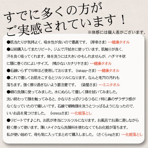 石鹸・洗剤が登場していなかった、数十年前までは、これだけで十分に水周りを綺麗にしていたといいます。あかこすりも布でゴシゴシ擦ると、お肌はいつもピカピカ。石けんを使わずに済むので、排水も、自然のままに、川にお返しできたのですね。 - ◎吸水力は普通の布の1.2倍~1.5倍