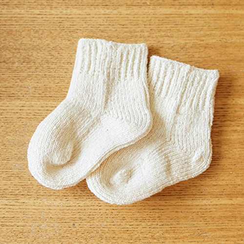 - 細い手つむぎ糸をふんわりと編み上げました。自分で動き回ることが出来るようになる前の少しの間、このくつしたで小さな足を包んであげてください。