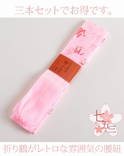 腰紐 子供用 腰ひも 七五三 小物 ピンク 鶴 三本組 セット 着付け 着物 和装 女の子 浴衣 こしひも 日本製 sin2734_wk