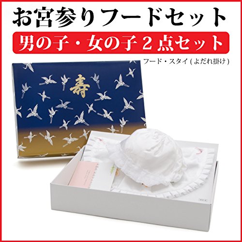 【メール便対応】お宮参り よだれかけ 涎かけ 小物 初着 産着 帽子 フードセット 白 男の子 女の子 2点セット 3470-00005 (メール便で発送