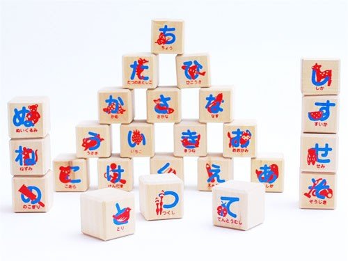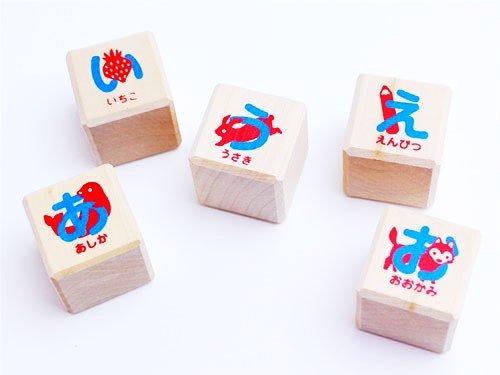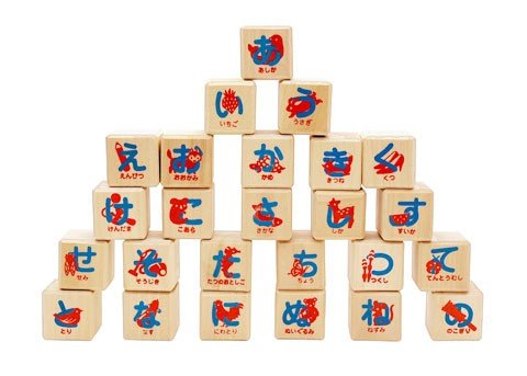 積み木 おもちゃ 50音の「ひらがな」がかかれています。 役立つ 知育玩具★あそび広がるつみき あいうえおセット