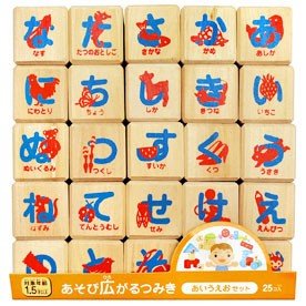 - 表と裏で50音の「ひらがな」がかかれています。 つみきには文字に合わせたイラストが描かれているので、楽しみながらひらがなを覚えられます。 ●1.5才 最初はつみきとして♪ ●2才 つみきのイラストの名前を言ってみよう! ●4才~ バラバラにしたつみきを五十音順にならべてみよう! ■構成内容:つみきパーツ25個 <あそび広がるつみきの特徴> ◆木のおもちゃをお手ごろな価格でご提案。 ◆お子さまの成長にあわせて、長く遊んでいただけます。 ◆一辺を3センチに統一しているので、他の種類の商品と組み合わせることによってあそびが広がります。