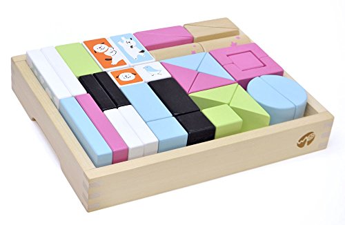 ■構成内容:積み木×35個、木箱、リング付きカード×1セット(20枚)、シール×1枚