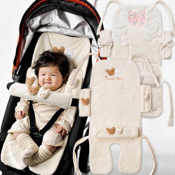 ●商品説明:5点式ベルトに対応できるベビーカー用シートセットです。赤ちゃんの首や頬をこすれから守りマルチに使えるハーネス、ガードカバー。パイル素材だから肌触りもバツグン。