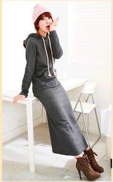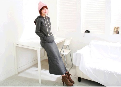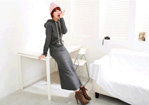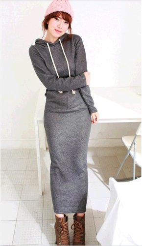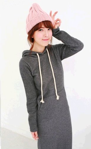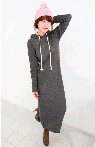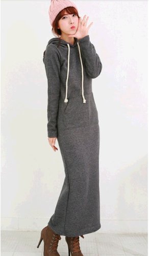 410-og 肥厚項 マキシパーカーワンピース 裏毛 ロング丈 マキシワンピース 長袖ワンピース/ドレス マキシ丈ニットカンガルーポケット ワンピース 長袖無地ロングワンピ★カジュアル♪厚手 ダークグレー 一枚入れ 並行輸入品