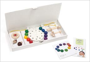 わが子の誕生、これ以上感動的な創造場面はないはずです。ともかく元気に育って欲しい…どんな親でもまず願います。 そして、できれば素直に、明るく、賢い子であってくれればと次第に願いがふくらんできます。(中略)童具は親子、友だち同士の心をつなぎ、創造活動を無限に繰り広げるための「道の具」としてつくられました。(童具館カタログより抜粋) 特に「はじめて出合う童具 - ボールと球」はケルンボールやカラーボールなどを使った、乳幼児との遊び方の実例やコミュニケーションの取り方といった内容の他に、乳幼児の月齢発達が18ページにわたって詳細に記載してあり、遊び方やおもちゃの選び方の参考になります。 また、このセットのおもちゃ(童具)は自閉症、アスペルガー症候群などの症状を持つ子どもたちの療育現場でも、優れたおもちゃとして使われています。