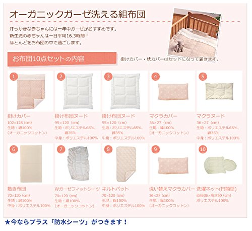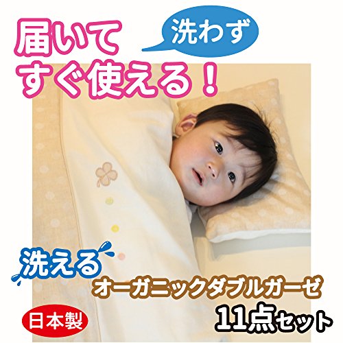 babyshower 【日本製】 届いてすぐ使える(熱処理済み)洗えるベビー布団セット 【オーガニックダブルガーゼ】 11点セット ≪花≫