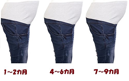 [笑顔一番] 楽 ラク マタニティ 用 ストレッチ ジーンズ デニム 素材 マタニティー パンツ 妊婦 さん スキニー ボトム ウェア ファッション レディース 大人 / ウエスト 調整可能 妊婦初 ~後期、産後まで 長くご使用できます [A085-10]