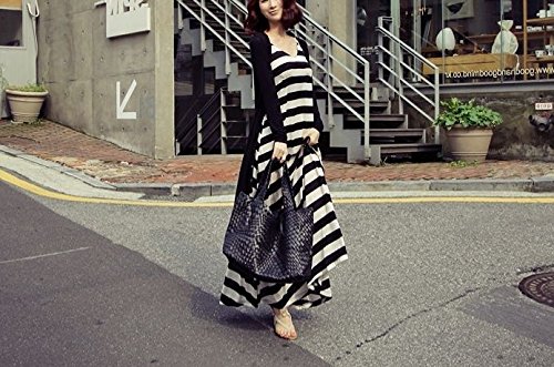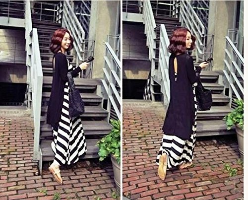 [笑顔一番] ボーダー コットン マキシ ワンピース マタニティ ロング フレア ライン レディース 大人 ファッション 大きい サイズ M L XL [A052-01] (XL サイズ)
