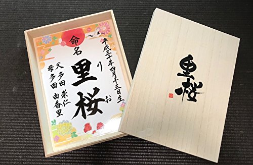 - 木箱には命名書または、命名軸にお書きした赤ちゃんのお名前をお書き致します。