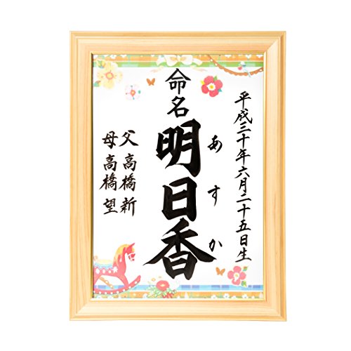 A4額入り命名書(ヒノキ)4.木馬と花(オレンジ) 他デザイン多数!(※詳しくは画像をタップ)【命名紙・命名用紙・赤ちゃん・誕生・名づけ・記念】