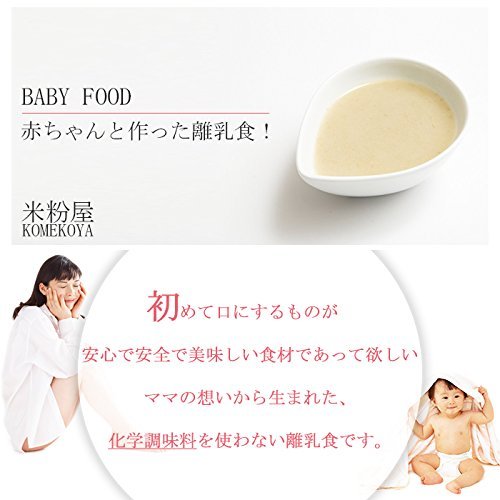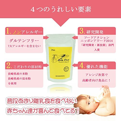 - 初めて離乳食を食べる赤ちゃんに米粉の安心・安全・美味しいを!米粉の離乳食!長崎県産の米粉、昆布粉を使用したペースト状の離乳食です。