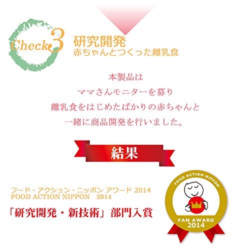- アレルギーがある子でも安心して食べることができ普段あまり離乳食を食べない赤ちゃん達がたくさん食べてるのでママが大喜び。エビ・カニ・小麦・そば・落花生・乳・卵 不使用です。