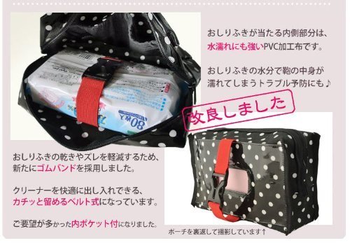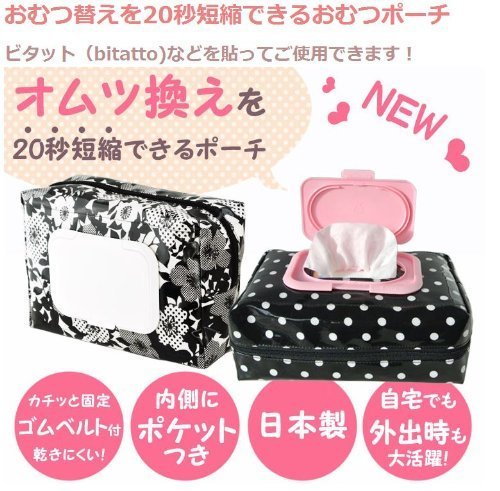 - 内ポケットにビニール袋などを収納できます。 ポーチ内でのズレ防止ベルトを標準装備。 開閉可能なスナップボタン付き持ち手がついております。 外出先などではこのポーチ1つでおむつ替えが完了! 帰宅後はカバンからこのポーチがあれば、もう おしりふきケース も要りません。 出産祝いにもオススメです!