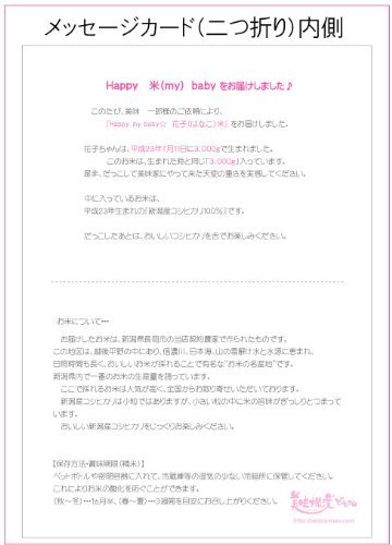 - 出産内祝に贈る赤ちゃん体重米「HAPPY米BABY(赤ちゃん米)」(新潟産コシヒカリ使用)3501-3750g