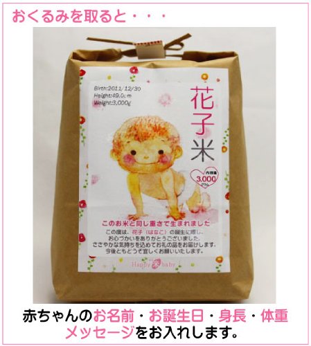 - 出産祝いのお返しに赤ちゃんと同じ世界にたったひとつしかないかわいい贈り物を♪赤ちゃんの生まれた時と同じ重さのお米で作成。