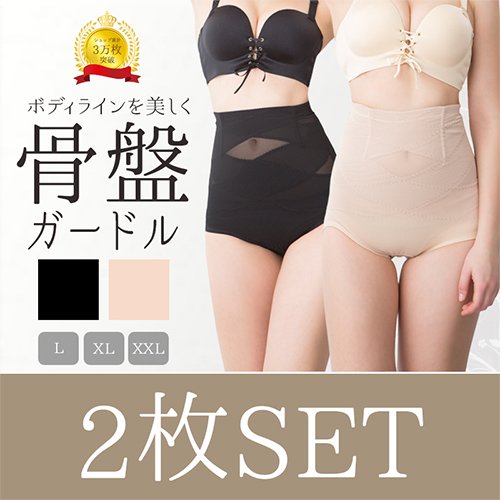 ◇ハイウエスト ガードル 『骨盤ガードル』【2枚セット】 補正下着 下腹 骨盤矯正 産後 ヒップアップ ショート 引き締め (XL, ブラック)