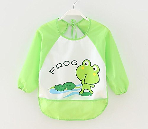 美来Kids ベビーエプロン 長袖 防水エプロン 食事用 キャッチポケット付き (カエル)