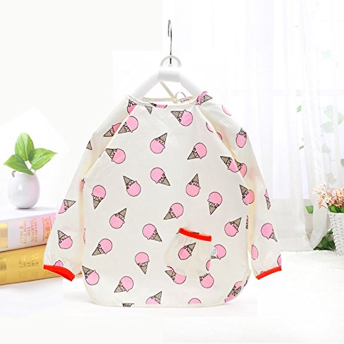 美来Kids ベビーエプロン 長袖 防水エプロン スモック 食事用 お絵かき用 泥遊び用 m-ap006 (アイスクリーム(ピンク))
