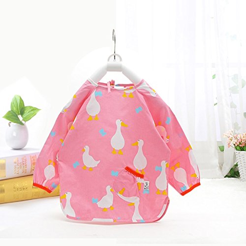 美来Kids ベビーエプロン 長袖 防水エプロン スモック 食事用 お絵かき用 泥遊び用 m-ap006 (アヒル(ピンク))