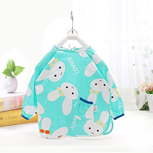 美来Kids ベビーエプロン 長袖 防水エプロン スモック 食事用 お絵かき用 泥遊び用 m-ap006 (うさぎ(水色))