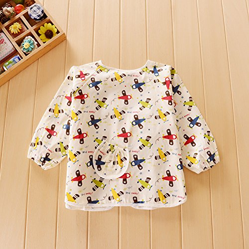 美来Kids ベビーエプロン 長袖 防水エプロン スモック 食事用 お絵かき用 泥遊び用 2枚セット (ひこうき柄)