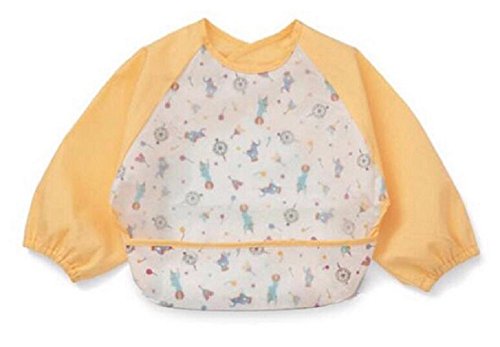 美来Kids ベビーエプロン 長袖 防水エプロン スモック 食事用 お絵かき用 泥遊び用 キャッチポケット付き m-ap005 (黄-サーカス)