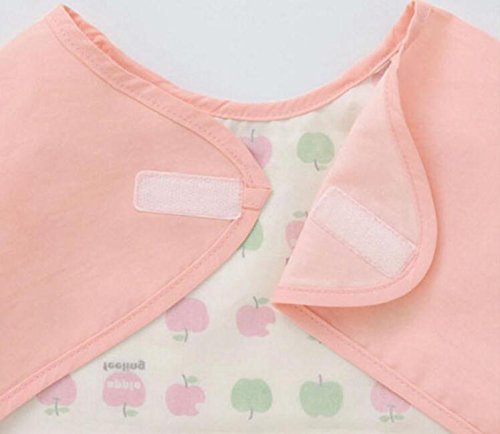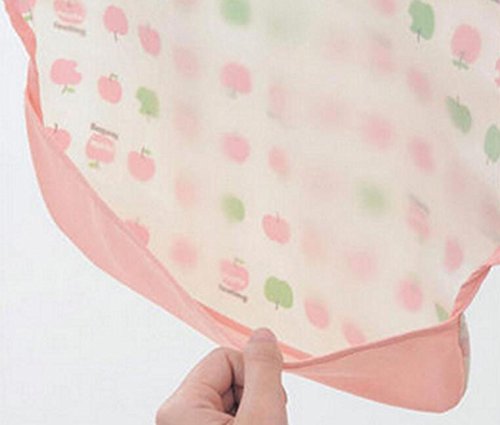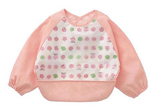 美来Kids ベビーエプロン 長袖 防水エプロン スモック 食事用 お絵かき用 泥遊び用 キャッチポケット付き m-ap005 (ピンク-りんご)