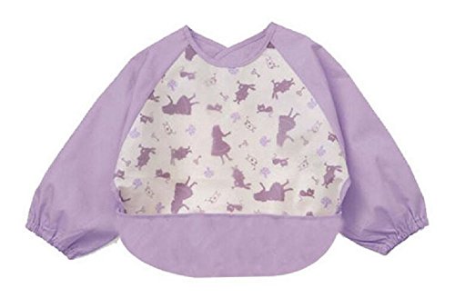 美来Kids ベビーエプロン 長袖 防水エプロン スモック 食事用 お絵かき用 泥遊び用 キャッチポケット付き m-ap005 (紫-ひめ)