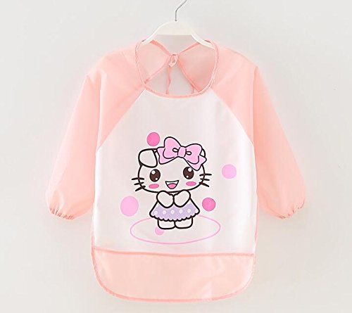 美来Kids ベビーエプロン 長袖 防水エプロン 食事用 キャッチポケット付き (ネコ)