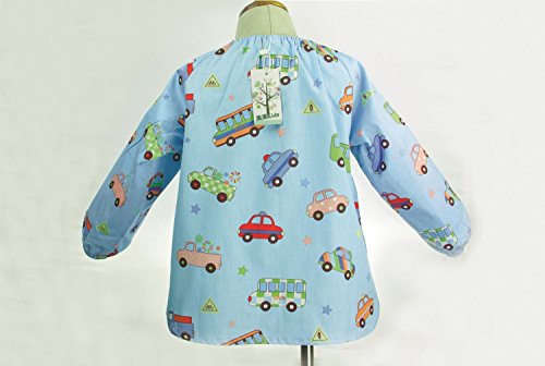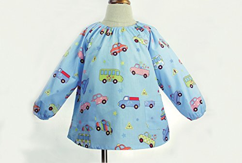 子供 エプロン 長袖 スモック 食事用 お絵かき用 乗り物大好き 車柄 飛行機柄 男の子 すっぽり被れるタイプ ポケット付き m-ap012 (110, 車柄-1)