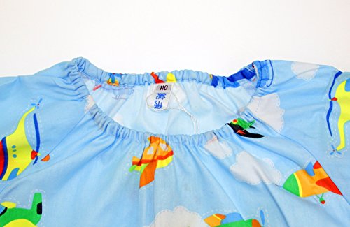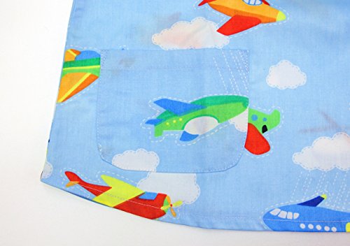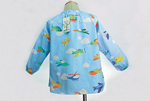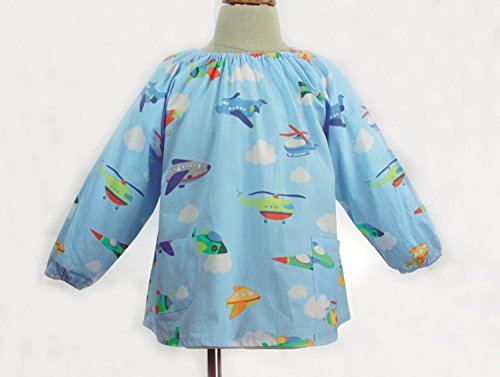 子供 エプロン 長袖 スモック 食事用 お絵かき用 乗り物大好き 車柄 飛行機柄 男の子 すっぽり被れるタイプ ポケット付き m-ap012 (110, 飛行機柄)