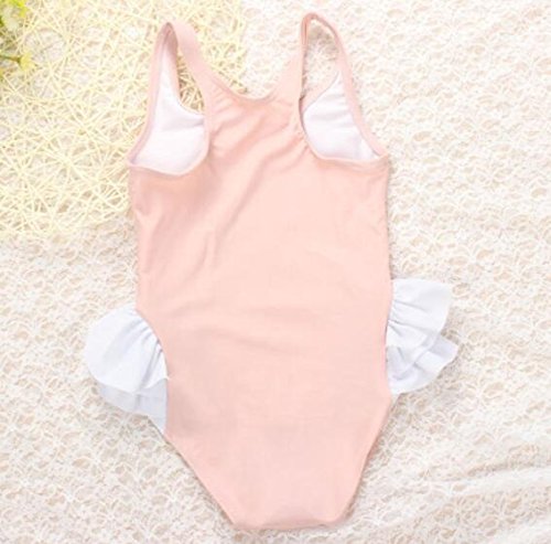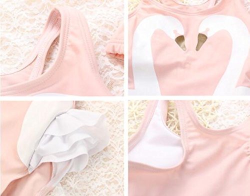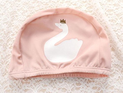 (美来Kids) こども服 女の子 水着 ワンピース 2点セット キャップ付き スワン柄 キュート フリル ベビー キッズ 保育園 幼稚園 (L(身長95-105㎝), ピンク)