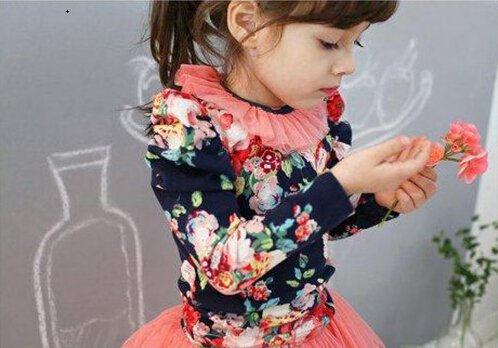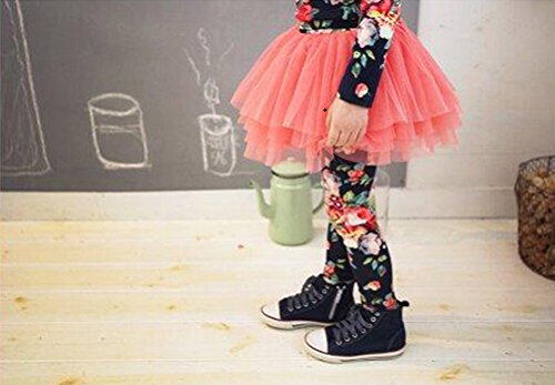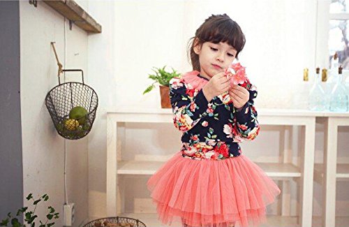 存在感ある大人っぽいフラワープリントのセットアップです。首周りのチュールが可愛い長袖Tシャツとチュールスカート付きのレギンスの2点セットです。 一目で目を引く可愛いフラワープリントで、女の子テイストたっぷりのセットアップですよ~ お友達とかぶらないかわいい服を探している方にお勧めです。 ※やや小さめにできております。1サイズ上のお買い上げをお勧めします。