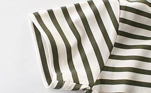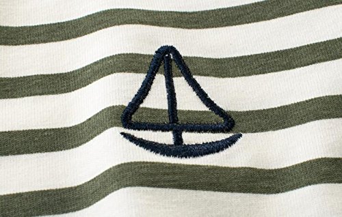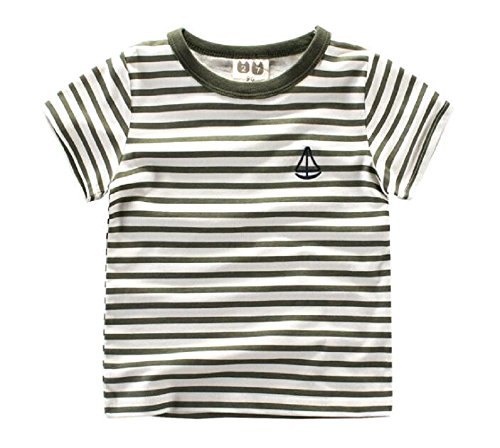 (美来Kids) こども服 男の子 キッズ 半袖 Tシャツ ボーダー マリン カジュアル 普段着 ベビー (100, カーキ)