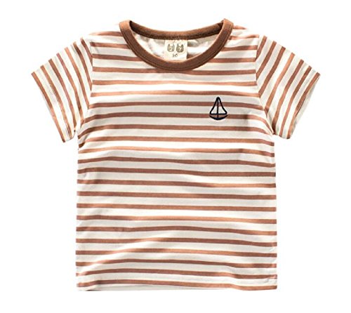 (美来Kids) こども服 男の子 キッズ 半袖 Tシャツ ボーダー マリン カジュアル 普段着 ベビー (120, ブラウン)